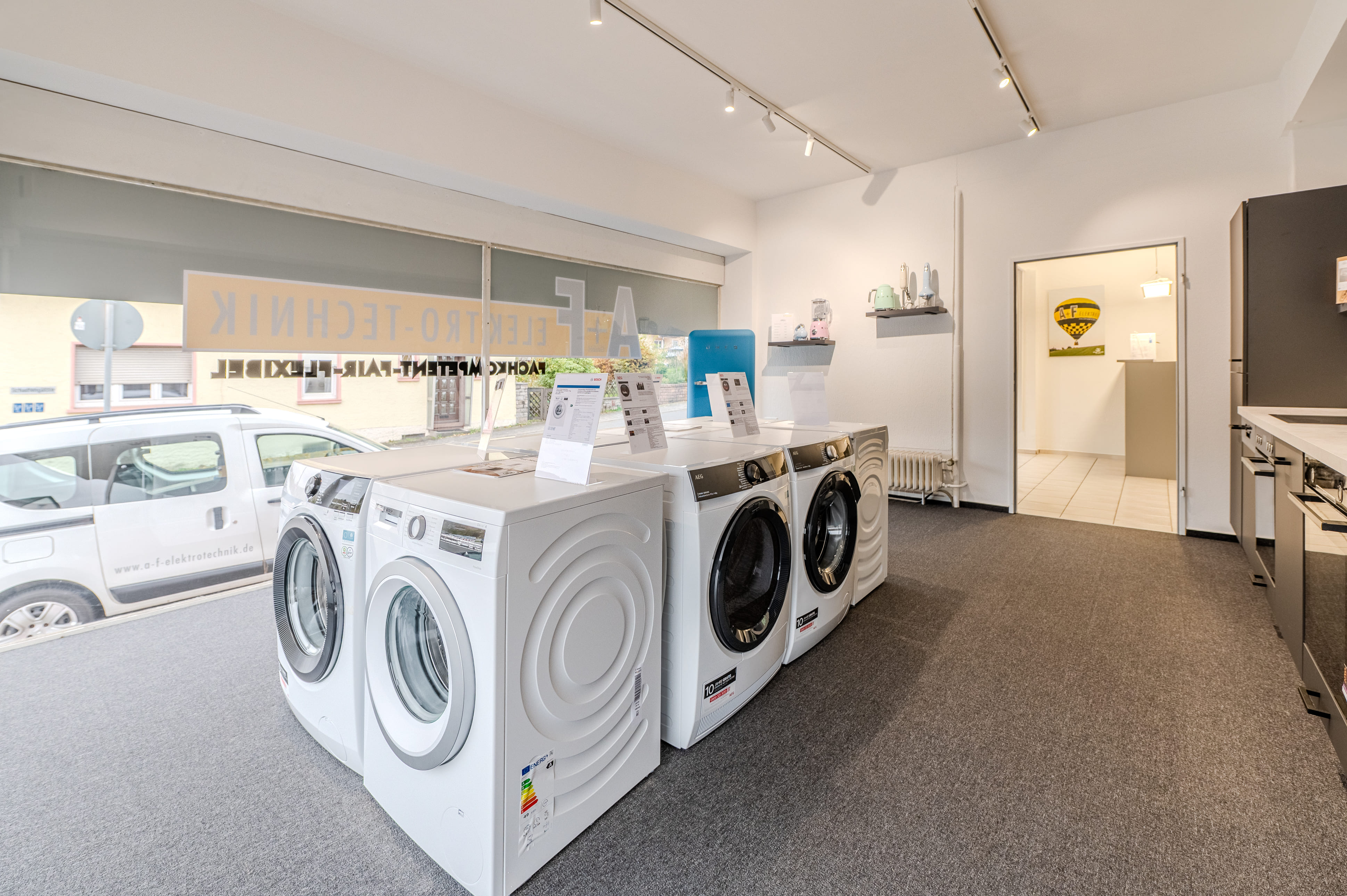 A+F Elektro-Technik in Birkenfeld bietet ein umfangreiches Angebot rund um Haushaltsgeräte. In unserem modernen Verkaufs- und Ausstellungsraum finden Sie eine große Auswahl hochwertiger Geräte – von Waschmaschinen, Trocknern und Spülmaschinen bis hin zu stylischen Küchengeräten im Retrodesign von SMEG.